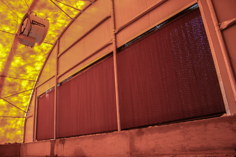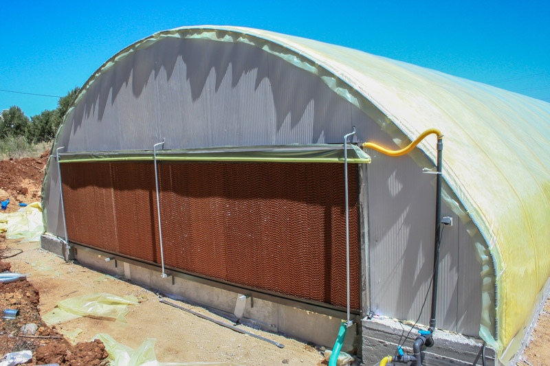 Λεπτομέρεια της πίσω όψης του θαλάμου όπου φαίνεται το υδροπάνελ δροσισμού. Οι διαστάσεις του είναι 2m X 6m και έχει πάχος 10cm όμως διατίθεται και σε πάχος 15cm για περιοχές με πολύ χαμηλή υγρασία.